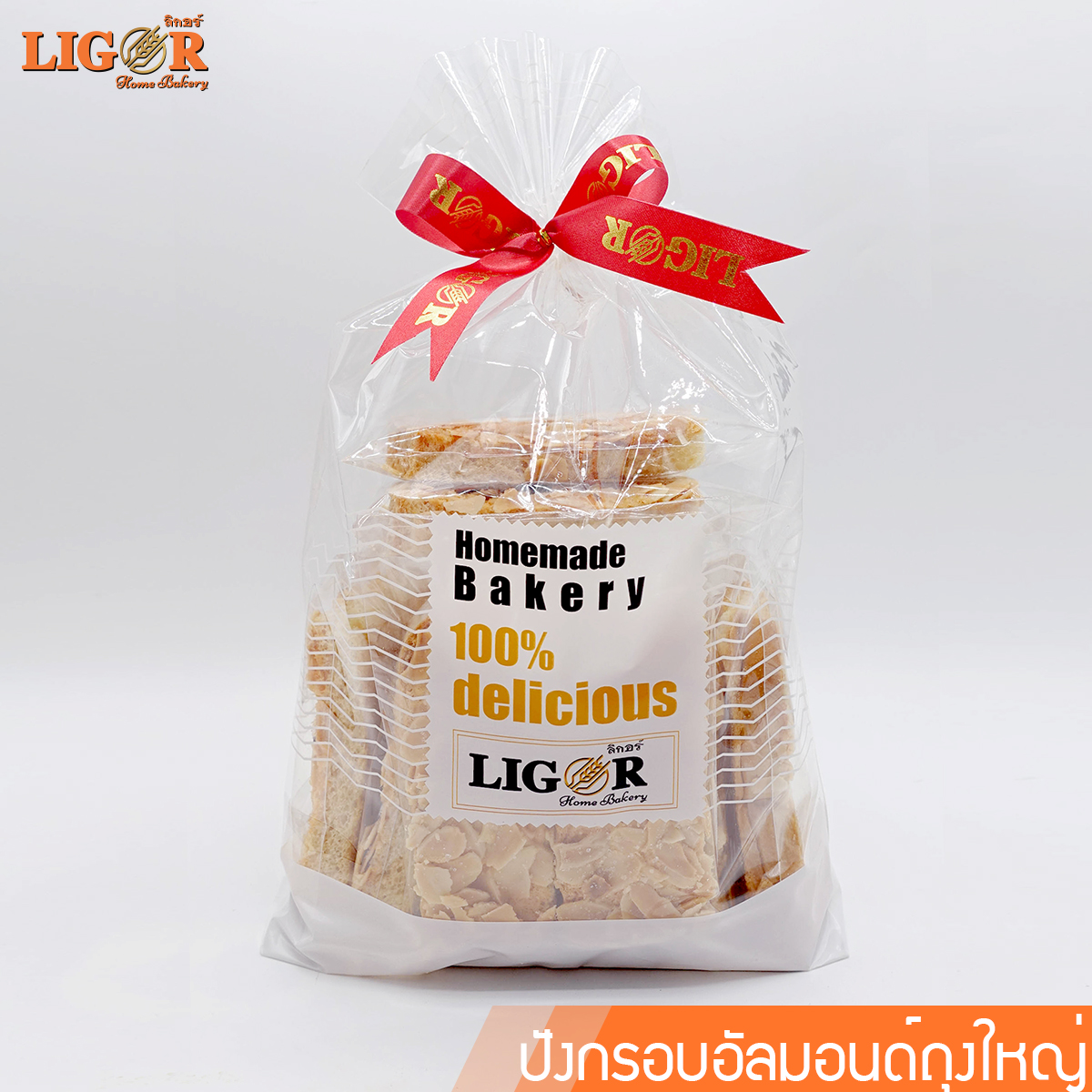 ขนมปังทาเนยหวานหอมละมุน แล้วโรยด้วยอัลมอนด์สไลซ์แน่น ๆ นำไปอบจนกรอบ หอมกรุ่นทุกแผ่น เคี้ยวเพลินได้กลิ่นหอมเนยผสมความมันของอัลมอนด์อย่างลงตัว เหมาะสำหรับซื้อเป็นของฝาก หรือขนมทานเล่นประจำบ้าน