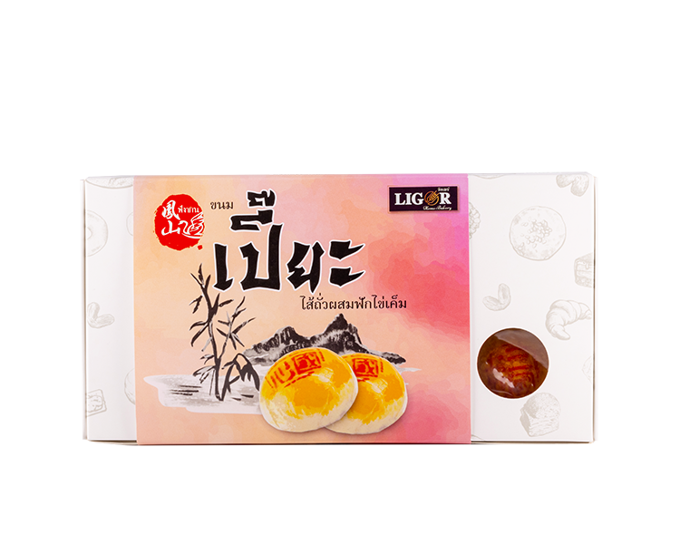 ขนมเปี๊ยะลิกอร์ เปี๊ยะลูกเล็กแป้งบาง ไส้ถั่วเขียวบดผสมฟักเขียว และไข่เค็ม